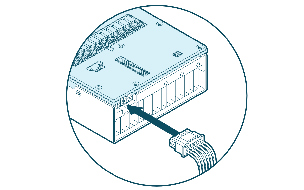 Connect a 12+4-pin 12V-2x6 power cable to the plug on the back of the add-in board.