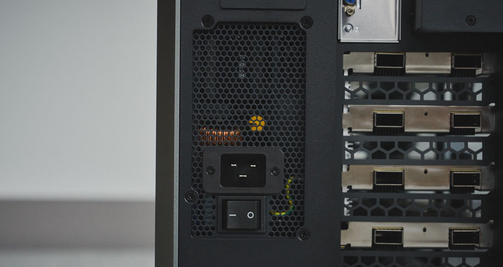 Connect the power cable. Connect the provided C13 power cable to the workstation and then to a dedicated power outlet.