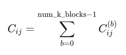 C_block. Since the same kernel will both produce and consume the partial results, double buffering would not provide any benefit.-