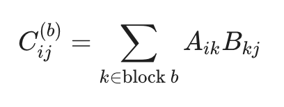 Applying this principle to matrix multiplication, the computation itself is unchanged: we still multiply