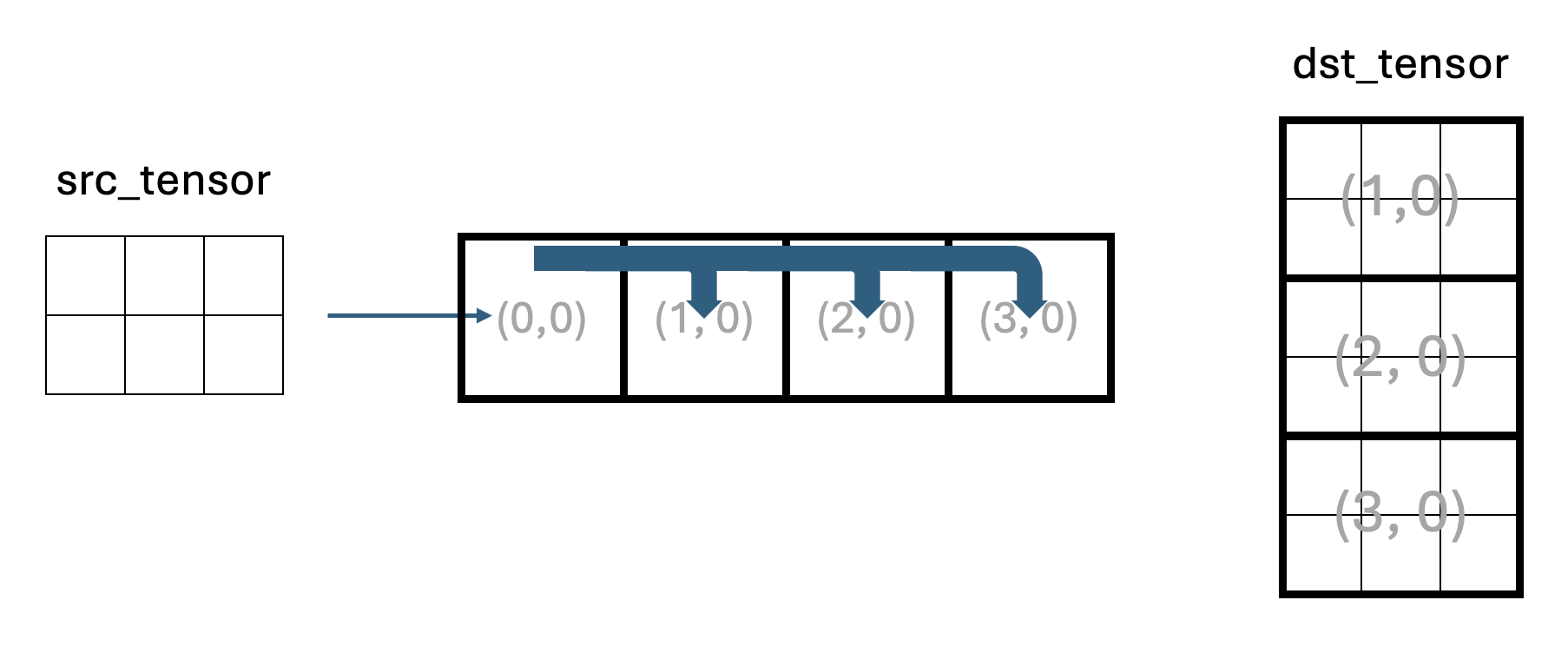 The host reads back all receiver outputs and verifies that the output tensor contains three copies of the original tensor stacked vertically. Note that the number of tiles in Figure 3 is symbolic and does not accurately represent the number of tiles in the actual program.